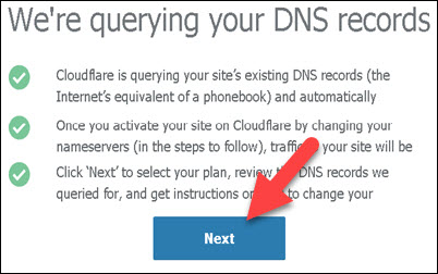 Next window me We’re querying your DNS records ka message show hoga. Yahapar aapko Next button par click karna hai.
