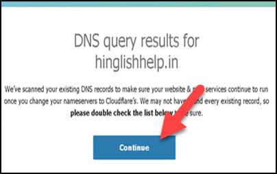Next window me aapki website ka DNS query result aa jayega yahapar Continue button par click kare.