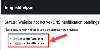 Ab cloudflare aapko nameservers provide karega. Isse aapko apne domain provider service me add karna hai. To iske liye sabse pehle inn nameserver ko copy kar lijiye.
