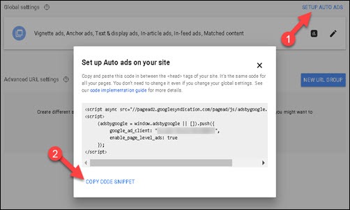 - Setup auto ads par click kare.