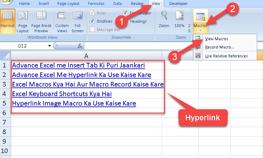 Microsoft Excel Me Hyperlink Text Macro Ka Use Kaise Kare
