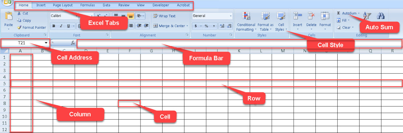 Advance excel me jo page hote hai unko excel spreadsheet kaha jata hai. Inka dusra naam worksheet bhi hota hai. Microsoft excel 2007 me total 16,384 column hote hai aur total rows 10,48,576 hoti hai. Row aur column ka jaha par ek dusre se joint hota aur jaha cursor hai uss area ko cell kaha jata hai.