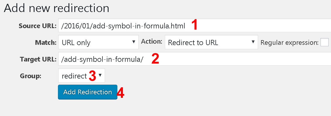 - Target URL me vo new link paste karna hai jaha par 404-error link ko bhejna hai.